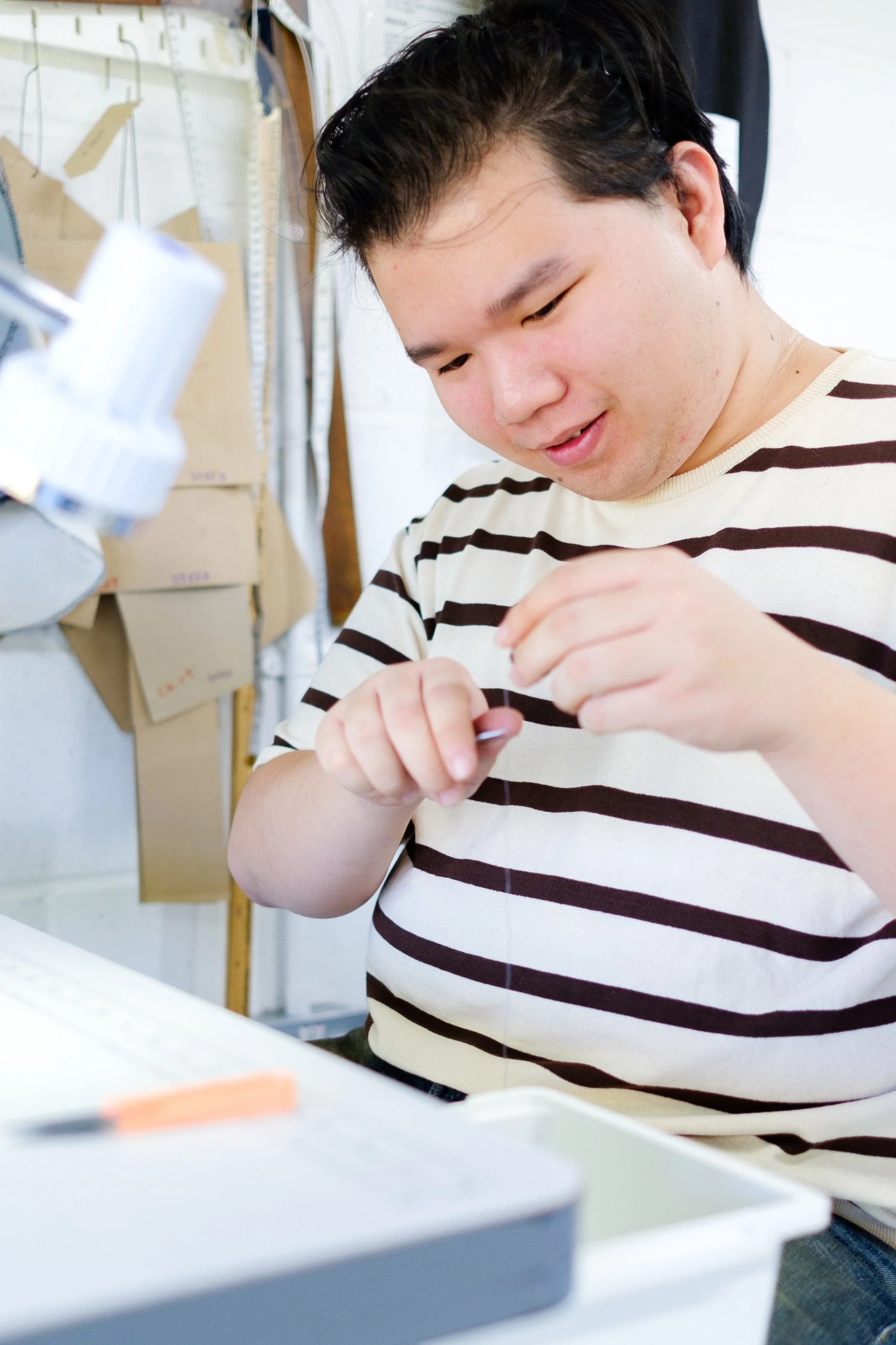βHi there! I'm Harry. I'm currently studying bespoke tailoring. I'm really happy to be part of the team at Holly Robins. Holly and Ellen are super nice. They are so patient when it comes to teaching me. While I was working for Holly, I gained up a variety of techniques and learnt the best standards of trouser-making in the industry. Holly was always there to encourage me on and patiently supported me throughout my learning journey. The atmosphere in the studio is really harmonious, and here Each day at work brings me happiness!β